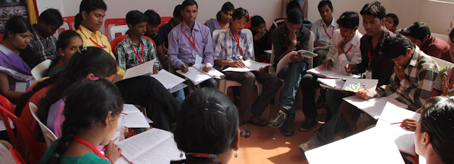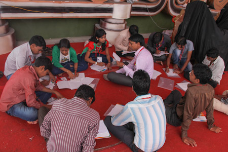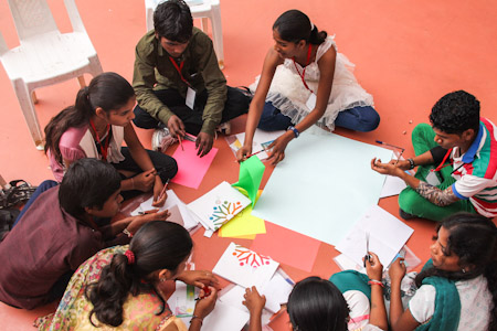 Youth work together on a creative presentation of the themes being studied