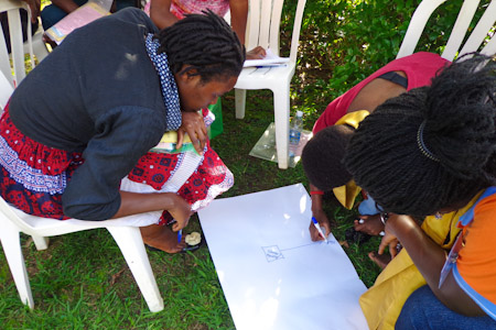 Over the course of these three days, each workshop group made use of artistic expressions to advance understanding of the various themes addressed in the materials. Skits, songs, dances, and poems were practiced during the breaks and later shared during the evening plenary sessions. Participants from South Sudan, for example, presented a skit exploring the opportunities for service to others that are created when we see all of humanity as members of a unified family. During the evening of the second day, a group from Masaka, in central Uganda, stirred the hearts of their peers by sharing a traditional Luganda dance—complete with engaging call and response lyrics, vibrant costumes, fastpaced drumming, and dynamic movements.
