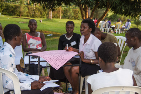 Opening devotions marked the inclusiveness of the conference, with prayers offered in a variety of locally-spoken languages—Alur, Ateso, English, Luganda, Luo, and Runyankole—and songs shared by youth from Kapalata, a community in the far northeastern corner of Uganda. After welcoming remarks by the members of the Continental Board of Counsellors, attending as representatives of the Universal House of Justice, and a member of the National Spiritual Assembly of Uganda, the participants divided into 15 different groups to study the conference materials.