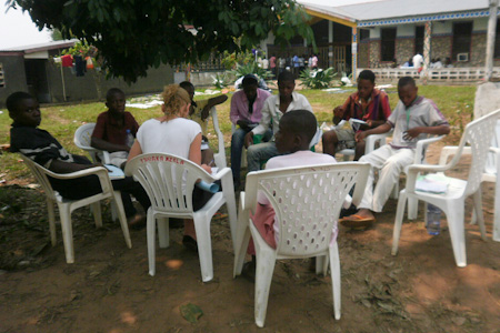 Participants gathered outdoors for plenary sessions in the mornings and evenings