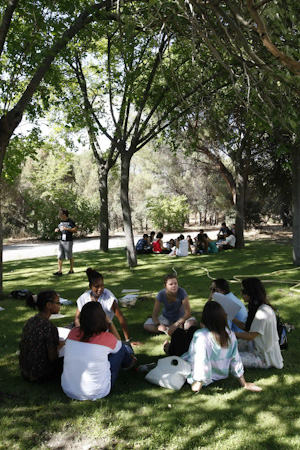 The youth, who came from diverse backgrounds and were of varying ages, opened the conference with prayers and Writings from the Bahá’í Faith, read and sung in a number of languages. During group sessions, youth settled on the grass and under the cool shade of pine trees. The atmosphere that characterized the conference was at once festive and focused, with the participants demonstrating an eagerness to grasp the concepts that had been introduced in the conference materials. Despite the imposing heat, discussions on themes such as the unique period of youth and early adolescence remained centered, and the youth kept an outstanding level of motivation and commitment throughout the conference.