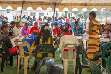 Some young people who attended the conference had already been serving, from a few months to sometimes a few years, as facilitators of groups for the spiritual empowerment of younger youth or as teachers of moral education classes for children. One of these youth said, “I saw kids in my community having nothing to do and I thought, let me help them!” —so she started a group. Others explained how the conference has motivated them to make similar efforts when they return home. One youth said, “We change the world by supporting the work of community building in our neighbourhood.” Another group of youth from the Limpopo region shared how the conference had motivated them, saying, “We want to take the vision and strength that we are developing here back to our villages.”