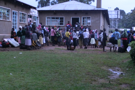 Participants assembled outside of Moi Girls’ Secondary School, where the conference was held