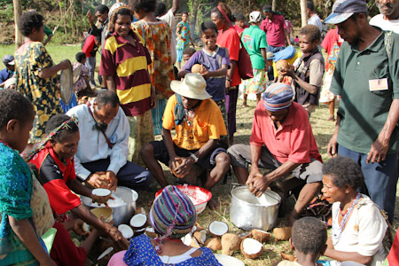 More than 1,000 community members—adults, younger youth, and children—took care of the conference logistics, ensuring that the multitude of participants had shelter, food, and all that was necessary for them to focus on their study of the conference materials. For days the local friends had worked together erecting makeshift sapling supported canvas shelters, a stage, pit latrines, and a mess hall for serving food. Villagers in and around Aragip emptied their gardens, filling up one of the storerooms at the school with produce.
