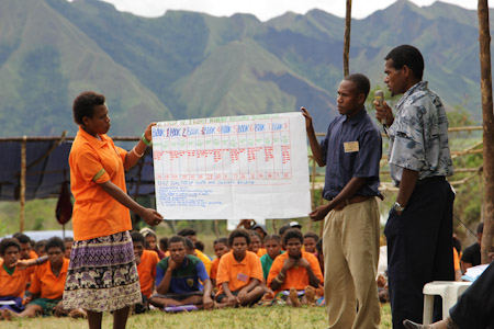 The valley of Aragip, the site of the second youth conference in Papua New Guinea, lies in the midst of the mountains in the remote interior of Milne Bay. The closest port of Sirisiri is a six-hour walk away, and the township of Alotau is another 10 hours away by boat and road transport. Yet almost 1,400 young people travelled for days to participate in the conference held on the grounds of a school in this valley from 20 to 22 September.