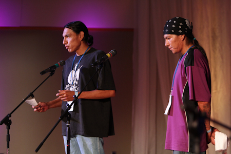 Two young men from South Dakota offered a sacred song in Lakota at the closing of the conference