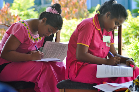 The rhythmic beat of a lali—a drum that is traditionally used to summon Fijians together—sounded the call to the evening program. Those gathered watched Frontiers of Learning, a documentary featuring the insights of four locations around the world engaged in the process of community building. A young man, moved by the spirit of cooperation and mutual support he saw demonstrated in the film, said, “One person was helped to serve, and was inspired to help someone else. We have to remember that in order to keep going.” Another observed, “You can see people working together. If we are working alone it is very hard to reach our goals but with encouragement we can achieve what the Revelation of Bahá’u’lláh wishes us to do.”
