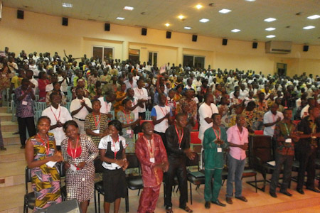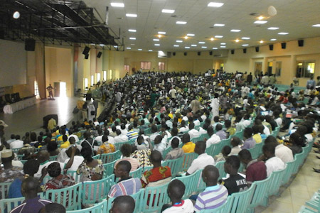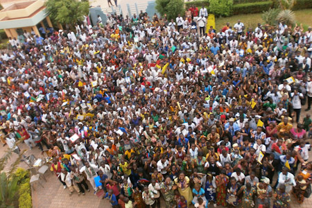 A colourful assemblage of over 1,000 youth from Benin, Burkina, Niger, and Togo who attended the conference