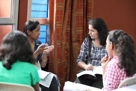 Discussions began in large groups and then broke into smaller ones in order to explore the concepts in light of their local realities