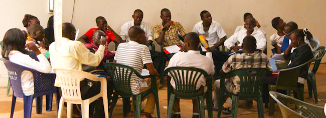 Discussions began in large groups and then broke into smaller ones in order to explore the ideas in light of their local realities