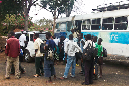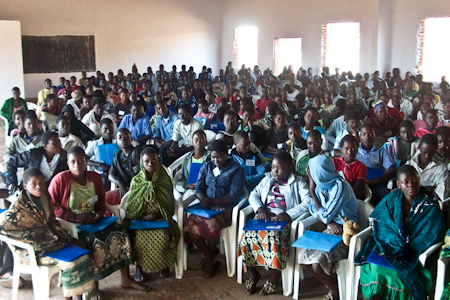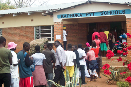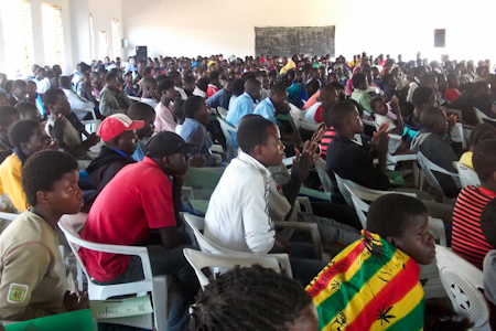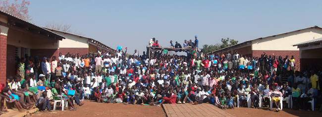 At last they arrived. As the afternoon turned late, in the quiet setting of Kaphuka Private School, secluded from the bustle of Blantyre, a city about 15 kilometres away, streams of youth reached their destination, in some cases after more than 10 hours of travel under arduous conditions. Organizers of the youth conference had hired a bus service; however, arrangements fell through at the last minute, leaving many participants in the region without a means of reaching the venue. Undaunted, the youth on the one hand and the task force on the other, collaborated and found creative ways to overcome the obstacle. They used every means of transportation available, from minibuses, lorries, private cars and bicycle taxis, which required some to leave their homes before sunrise. In the end, all 756 youth arrived safely, and with enthusiastic spirits and joyful faces, each took their turn registering in the brightly painted office of the school.